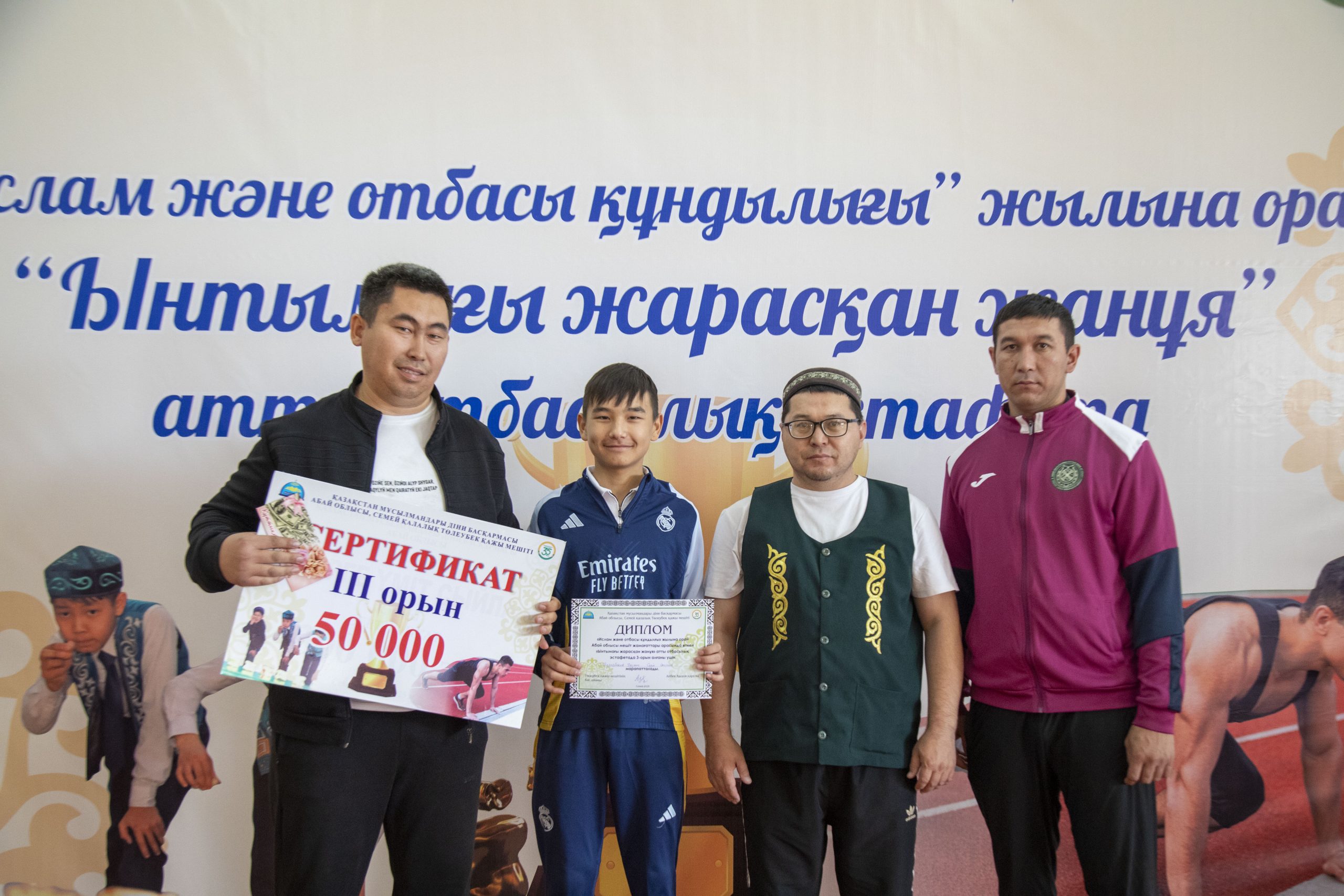 Жарыс нәтижесі бойынша, 1 орынды – Әбу бәкір сыддық мешіті командасы жеңіп алып, ақшалай 100 000 тг иеленді. 2 орын – Жоламан мешіті командасы иеленіп, ақшалай 70 000 тг иеленсе, 3 орынды – Шағыл мешіті командасы иеленіп, 50 000 тг қанжығасына байлады.