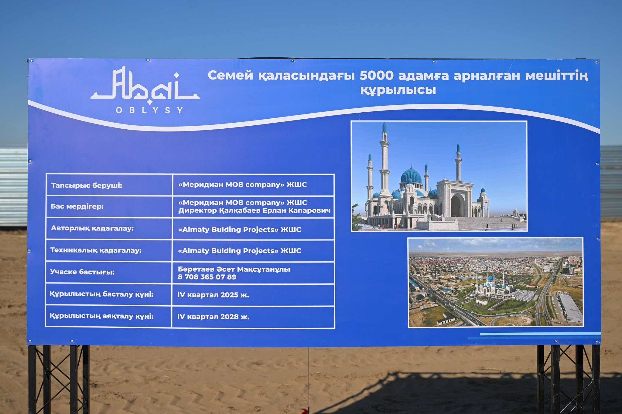 «Архитектуралық сәулеті келіскен, ерекше мешіт салынайын деп тұр. Абай елі, Семей жұрты көптен күткен мұндай ауқымды мешіт облысымызда ғана емес, осы төңіректе жоқ. Халыққа тек рухани ғана емес, мәдени қызмет көрсететін орталық болады. Абайдың 180 жылдық мерейтойы аясындағы мұсылман жамағаттың бірлескен жобасы деп айтуға болады. Бұл мешіт Алаштың рухани астанасына өте қажет. Осындай қолы ашық, жомарт жандардың демеушілігімен салынғалы жатыр. «Абайға құрмет» акциясы аясындағы алғашқы үлкен жоба болайын деп тұр», – деді облыс әкімі.