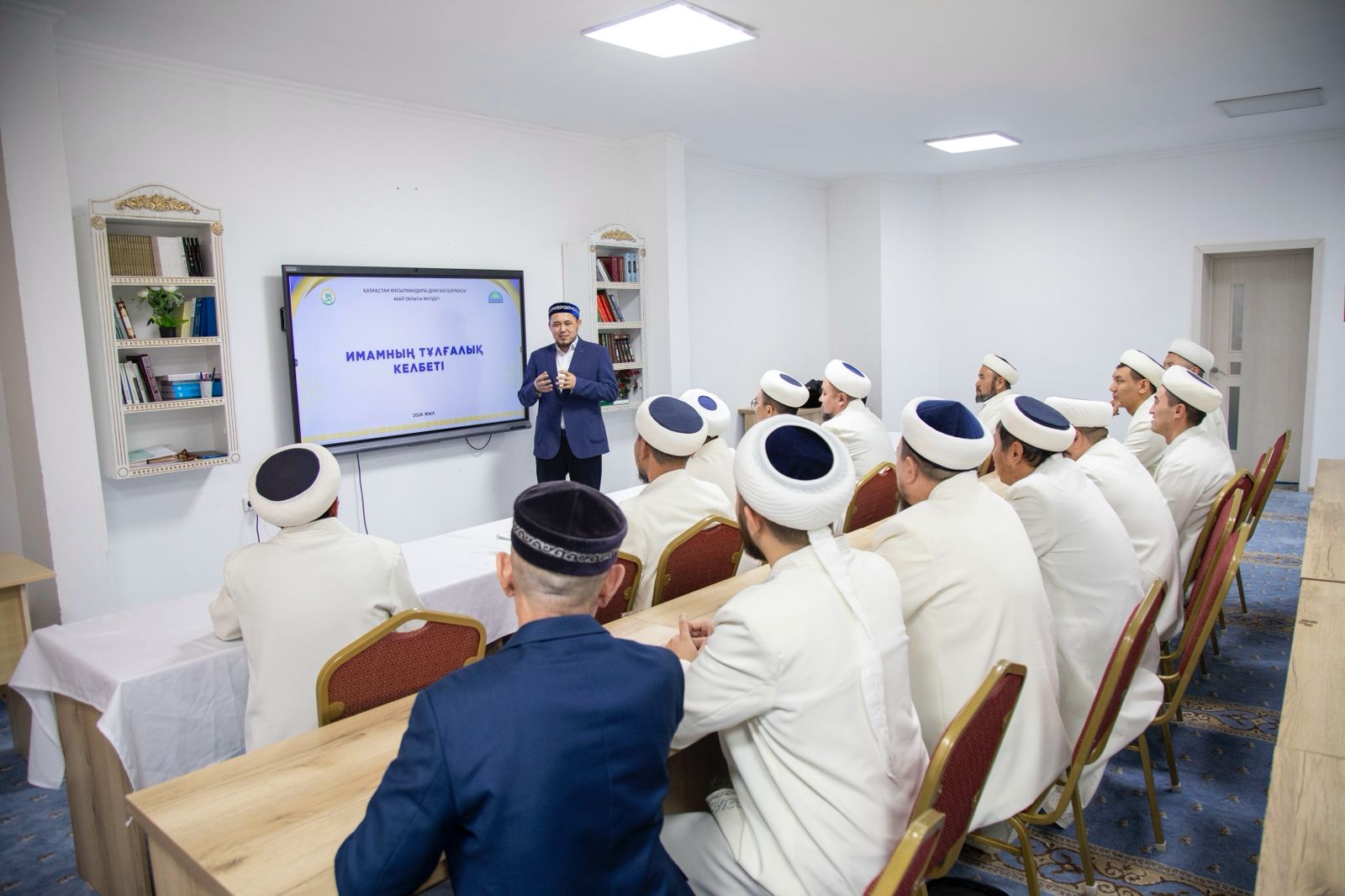 Абай облысы бойынша қала және аудан имамдарына арнайы Қазақстан мұсылмандары діни басқармасы қабылдаған “Қазақстан мұсылмандары” тұғырнамасы, “Имамның тұлғалық келбеті” құжаттары таныстырылып, жауапты имам Құттыбек Түменбай құжаттың мән-маңызына қатысты баяндамалар жасады.
